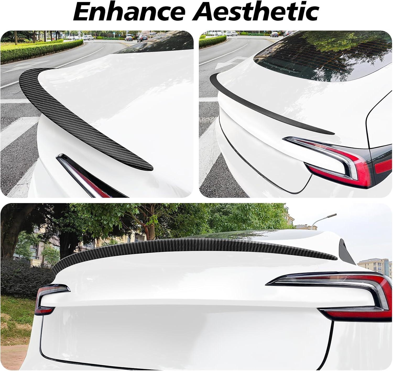 【Enhance Aesthetic】Install these Model 3 Highland accessories spoiler could effectively enhance sense of movement,reflect personal taste.Moreover,the carbon fiber spoiler could reduce the wind resistance coefficient,which could save energy consumption, improve endurance.