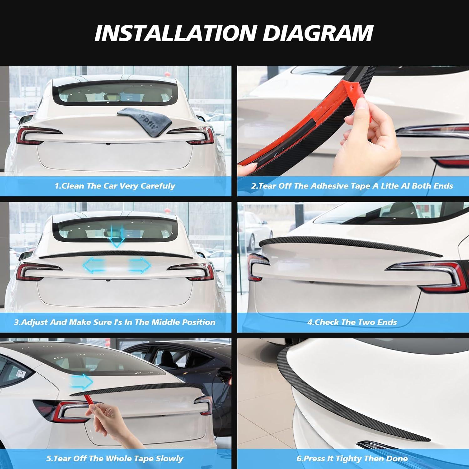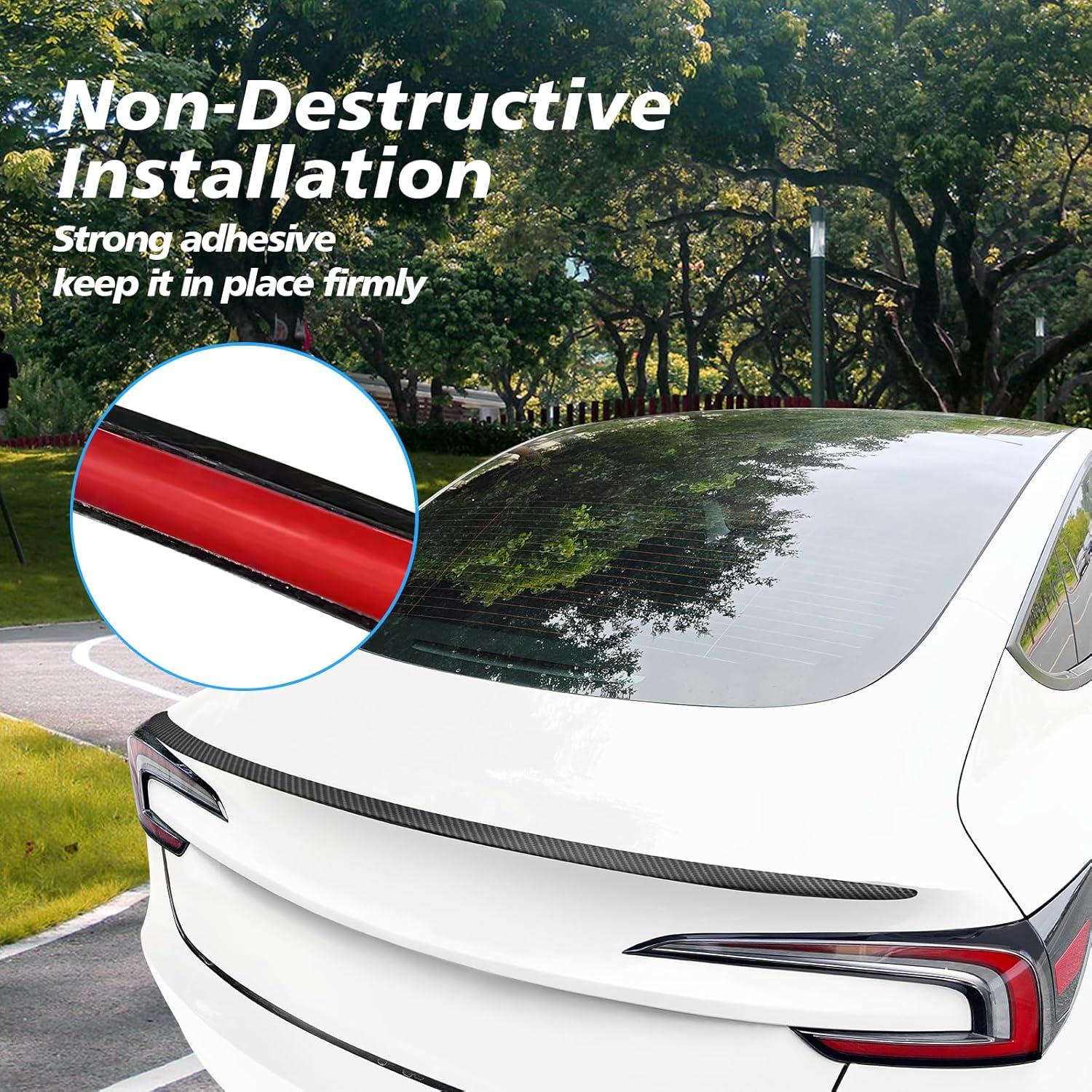 【No Damage Installation】Zero worry about installing the real carbon spoiler model 3 Highland that damage your original car,TSLDRV real carbon fiiber spoiler wing use traceless backing adhesive that could keep it in place firmly but leaving no residue when peeled off.Simply peel off the protective film and press it onto your Model 3 position.