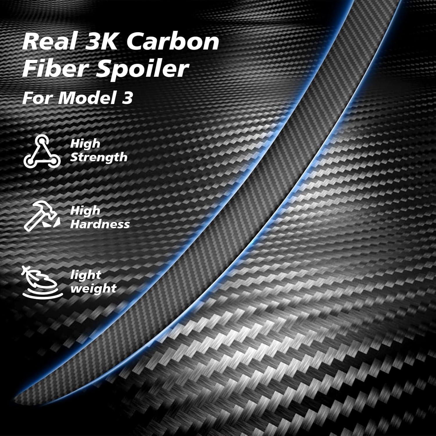 【Custom Designed for Tesla Model 3】TSLDRV real carbon fiber spoiler fits for Tesla Model 3 2024 2025 refresh,including 1 pack matte 3K dry carbon fiber 2025 2024 Model 3 Spoiler Wing and and Installation instruction..Designed according to 1:1 model of original vehicle,and perfectly fits its body.