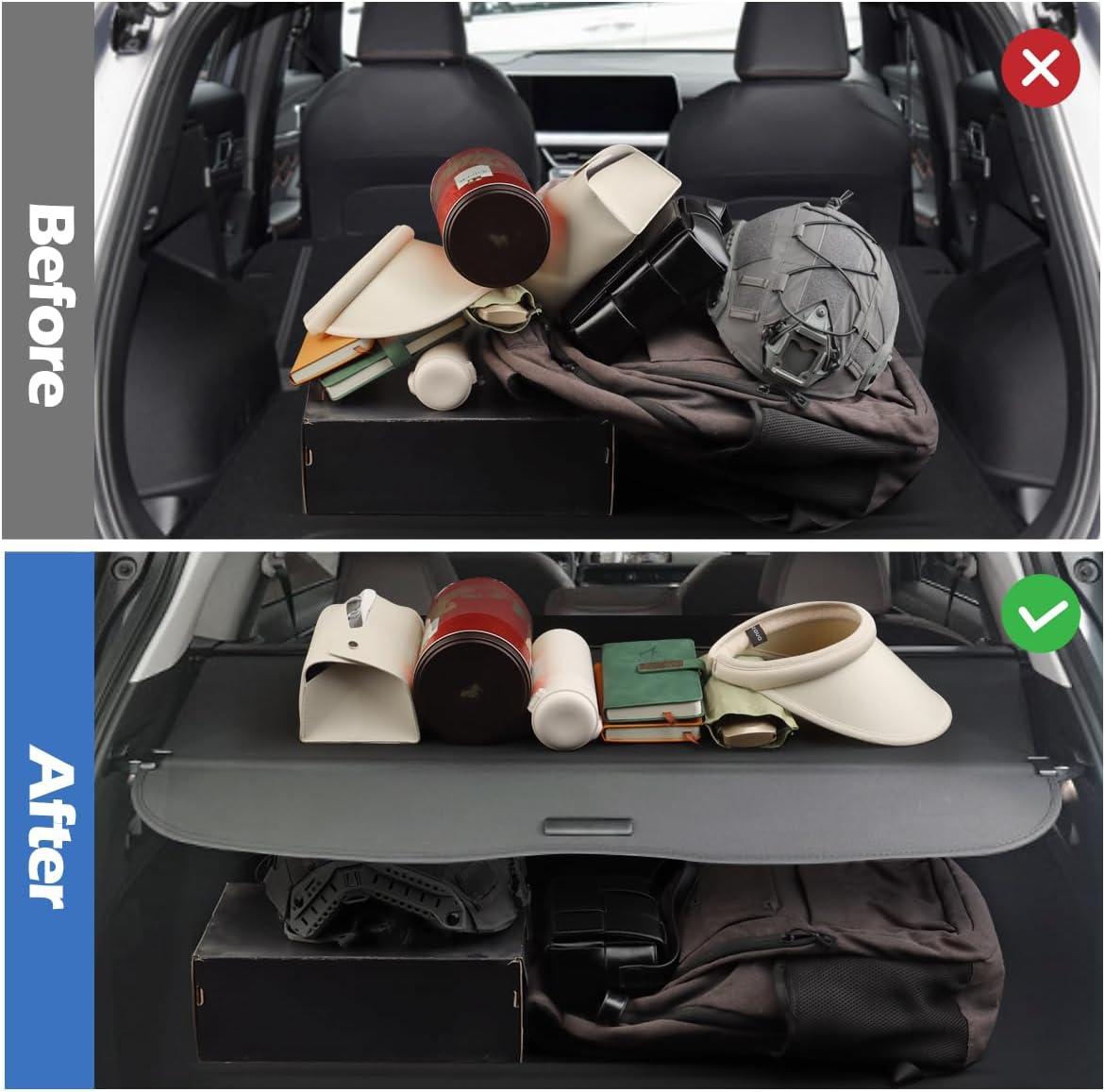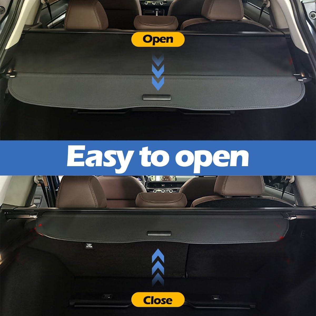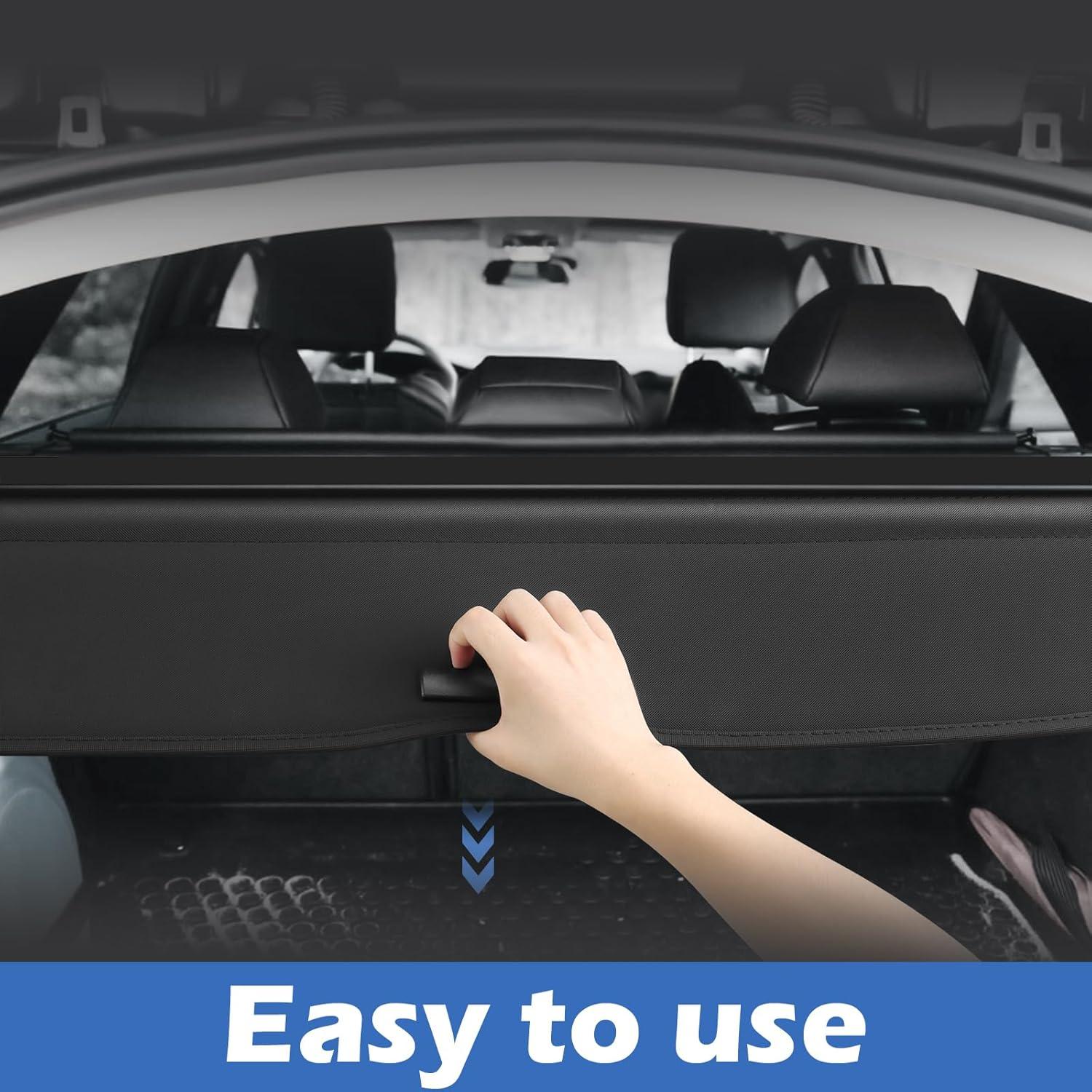 【Durable & Waterproof Material】Our trunk cargo cover is made of durable aluminum alloy with upgraded thicker canvas that feature waterproof and scratch resistance and it is easy to clean.